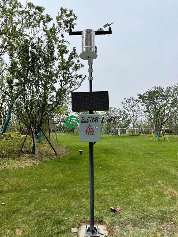 開發(fā)區(qū)與富源飛科物聯(lián)網(wǎng)合作建設(shè)了環(huán)境自動氣象站,對環(huán)境Pm2.5、Pm10、風(fēng)速、風(fēng)向、溫濕壓、日照、雨量等要素實時在線監(jiān)測,數(shù)據(jù)通過4G無線傳輸至云平臺。現(xiàn)場布設(shè)的LED屏可實時播放氣象數(shù)據(jù)。