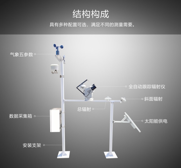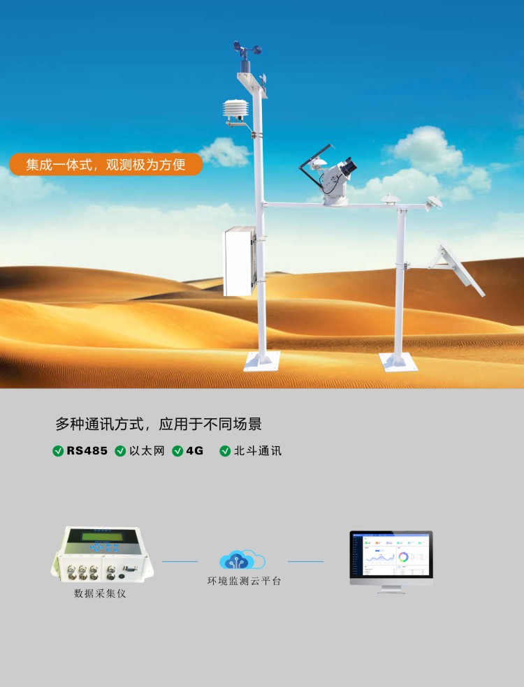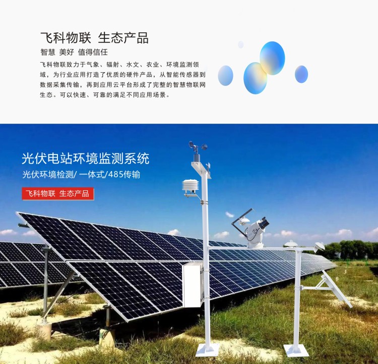 FY-SQ200型光伏電站環(huán)境監(jiān)測系統(tǒng)可觀測的環(huán)境輻射要素有:環(huán)境溫度、濕度、氣壓、組件溫度、風(fēng)速、風(fēng)向、傾斜總輻射、日照時數(shù)、水平總輻射、太陽直接輻射、太陽散射輻射等指標(biāo)。具有性能穩(wěn)定,檢測精度高,完全自動化監(jiān)測等特點(diǎn),可滿足光伏電站環(huán)境氣象監(jiān)測、太陽輻射監(jiān)測等相關(guān)要求。