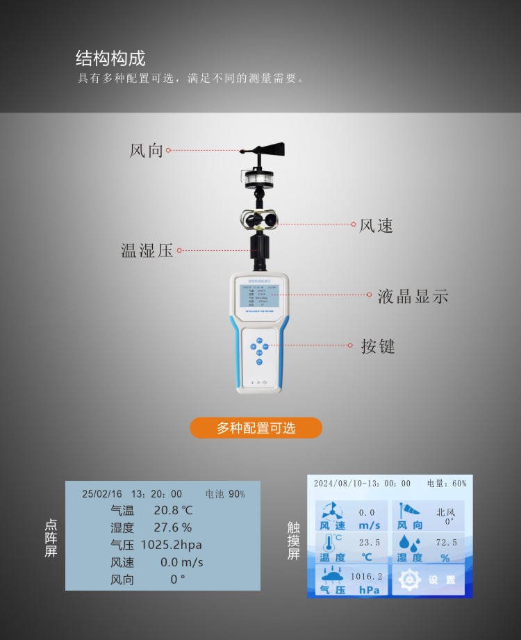 FY-Q6智能電子氣象儀是一款攜帶方便,操作簡單,集多項氣象要素于一體的可移動式氣象觀測儀器。系統(tǒng)采用精密傳感器及智能芯片,用于測量風(fēng)速,風(fēng)向、溫度,濕度,露點,大氣壓力,BF 薄福,風(fēng)寒指數(shù),海拔高度等數(shù)據(jù),并可擴展GPS定位功能。內(nèi)置大容量FLASH存儲芯片可存儲至少一年的氣象數(shù)據(jù);通用USB通訊接口,使用配套的USB線纜即可將數(shù)據(jù)下載到電腦,方便用戶對氣象數(shù)據(jù)的進一步處理分析。還支持4G無線通訊方式,數(shù)據(jù)可傳輸至云平臺。本儀器可用于農(nóng)林、環(huán)保、海洋、科學(xué)考察等領(lǐng)域。