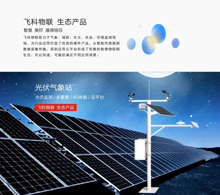 FY-SQ100型光伏電站環(huán)境監(jiān)測系統(tǒng),是按照氣象WMO組織氣象觀測標(biāo)準設(shè)計,可觀測的環(huán)境輻射要素有:環(huán)境溫度、濕度、氣壓、組件溫度、風(fēng)速、風(fēng)向、傾斜總輻射、日照時數(shù)、水平總輻射、太陽直接輻射、太陽散射輻射等指標(biāo)。具有性能穩(wěn)定,檢測精度高,完全自動化監(jiān)測等特點,可滿足光伏電站環(huán)境氣象監(jiān)測、太陽輻射監(jiān)測等相關(guān)要求。