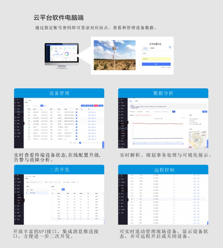 FY-DZ1000型GNSS位移監(jiān)測站主要由GNSS天線、太陽能電池板、主控制機(jī)箱、無線通訊單元和支架等部分組成,分為基準(zhǔn)站和測量站。具有高精度、低功耗、高性價比和便攜安裝等特點。通過4G或以太網(wǎng)上傳數(shù)據(jù)至監(jiān)控平臺,采用太陽能供電,不受地形限制。