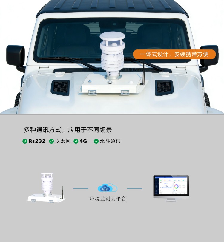FY-C200車(chē)載氣象站,專(zhuān)為車(chē)載應(yīng)急監(jiān)測(cè)設(shè)計(jì),可對(duì)風(fēng)速、風(fēng)向、溫度、濕度、氣壓、雨量、光照等進(jìn)行同步測(cè)量。采用進(jìn)口傳感元件作為感應(yīng)部件,具有測(cè)量精度高、穩(wěn)定性好等特點(diǎn),傳感器采用先進(jìn)的電路集成模塊,可根據(jù)用戶(hù)的不同需求輸出RS232、RS485、4G等通訊方式傳輸。儀器體積小巧,安裝方便且便攜,性能可靠。