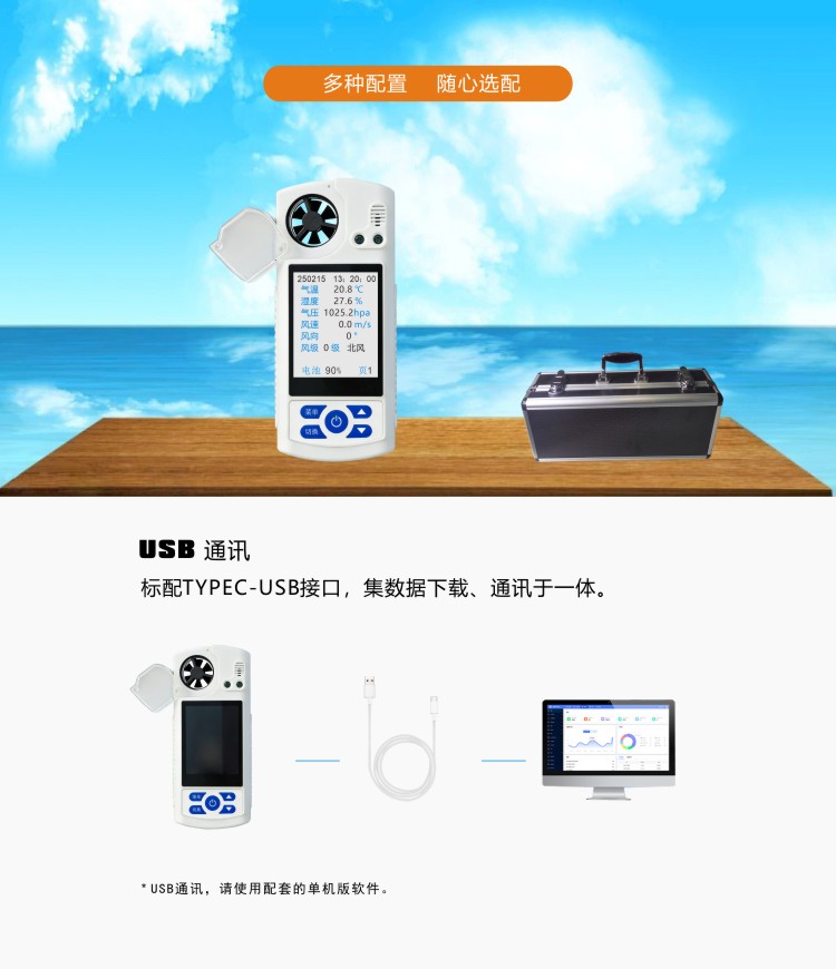 ●標(biāo)配TYPE-C型USB通訊接口,方便數(shù)據(jù)下載和充電;